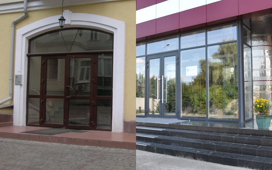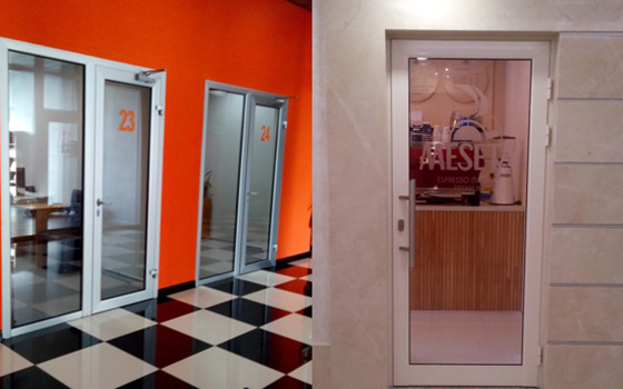 Те, як влаштований вхід у приміщення, має надзвичайно важливе значення. Він має бути надійним та практичним через інтенсивний потік людей. Разом з тим саме вхід «відповідає» за перше враження відвідувачів Вашого приміщення. Ми знаємо, як поєднати практичність та вишуканість. Опції: дотискачі, склопакет, гартоване скло, сендвіч панель, фарбування профілю на Ваш смак, великий вибір фурнітури.