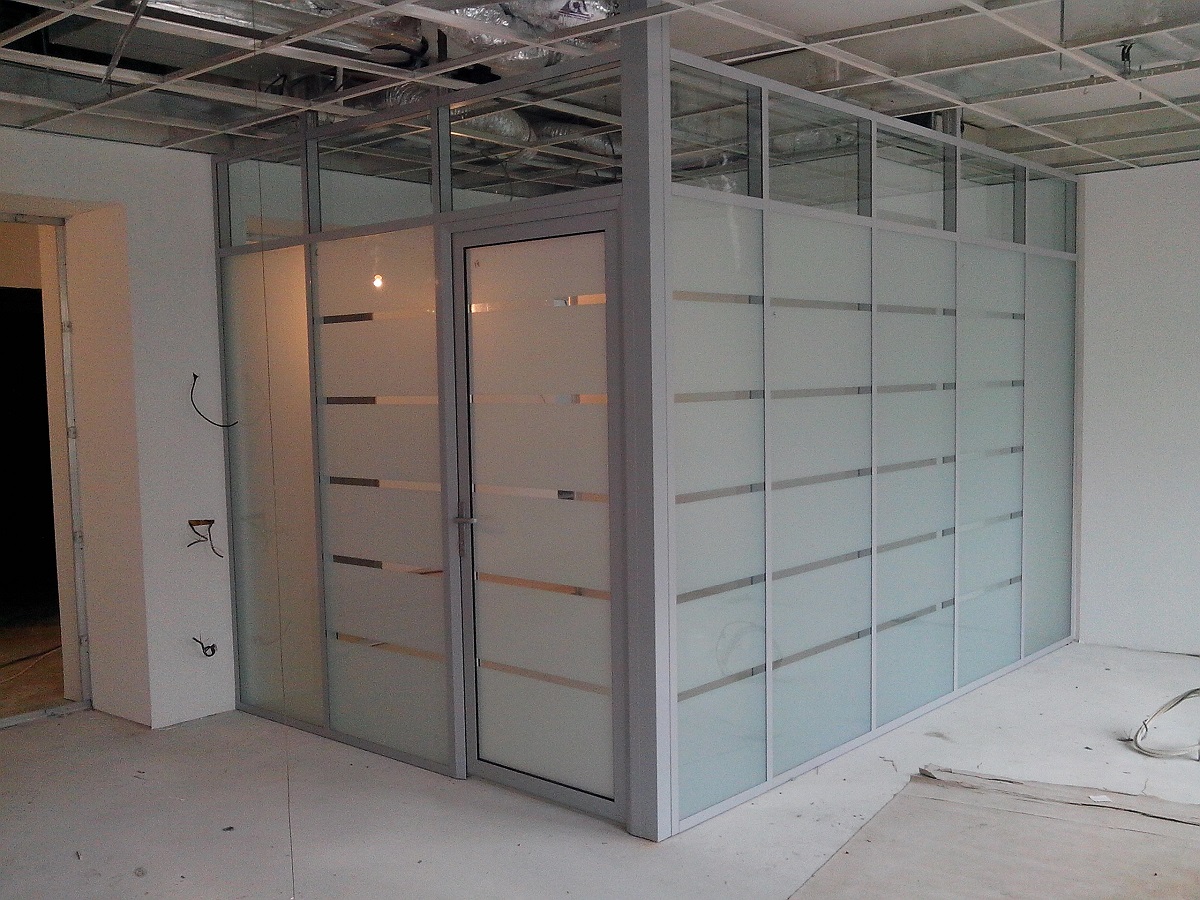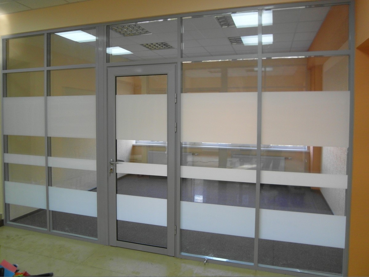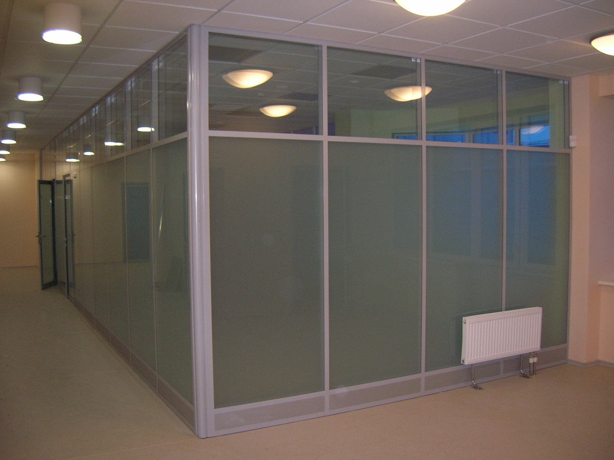 Алюмінієві конструкції надають максимально широкі можливості зонування і декорування офісного простору. Вони можуть містити в собі світлопрозорі, глухі і комбіновані модулі, дозволяють монтувати всередині себе різноманітні двері, люки, екрани, керовані жалюзі. Відрізняються легкістю монтажу, демонтажу і трансформації.