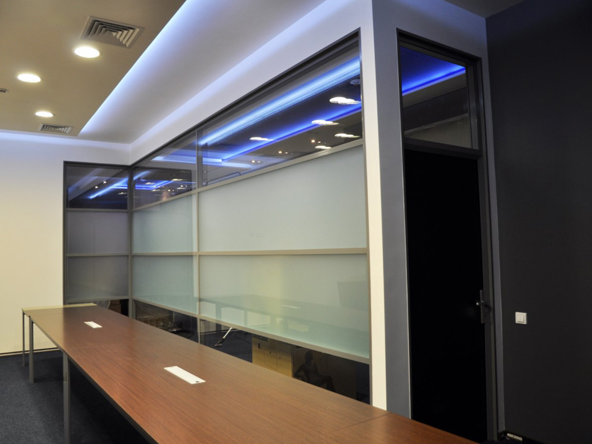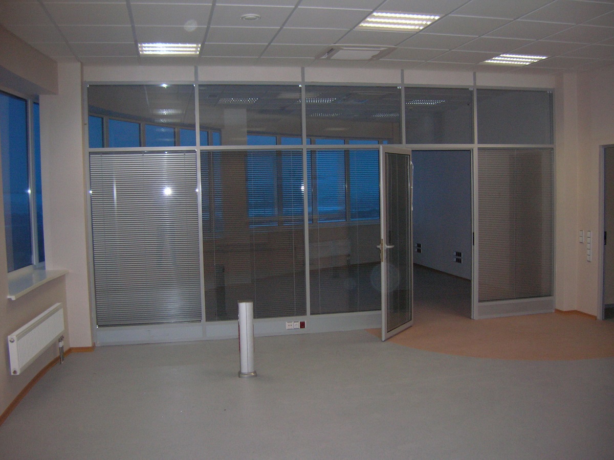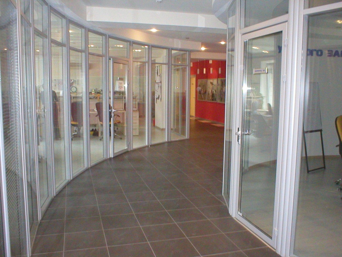 Алюмінієві конструкції надають максимально широкі можливості зонування і декорування офісного простору. Вони можуть містити в собі світлопрозорі, глухі і комбіновані модулі, дозволяють монтувати всередині себе різноманітні двері, люки, екрани, керовані жалюзі. Відрізняються легкістю монтажу, демонтажу і трансформації.
